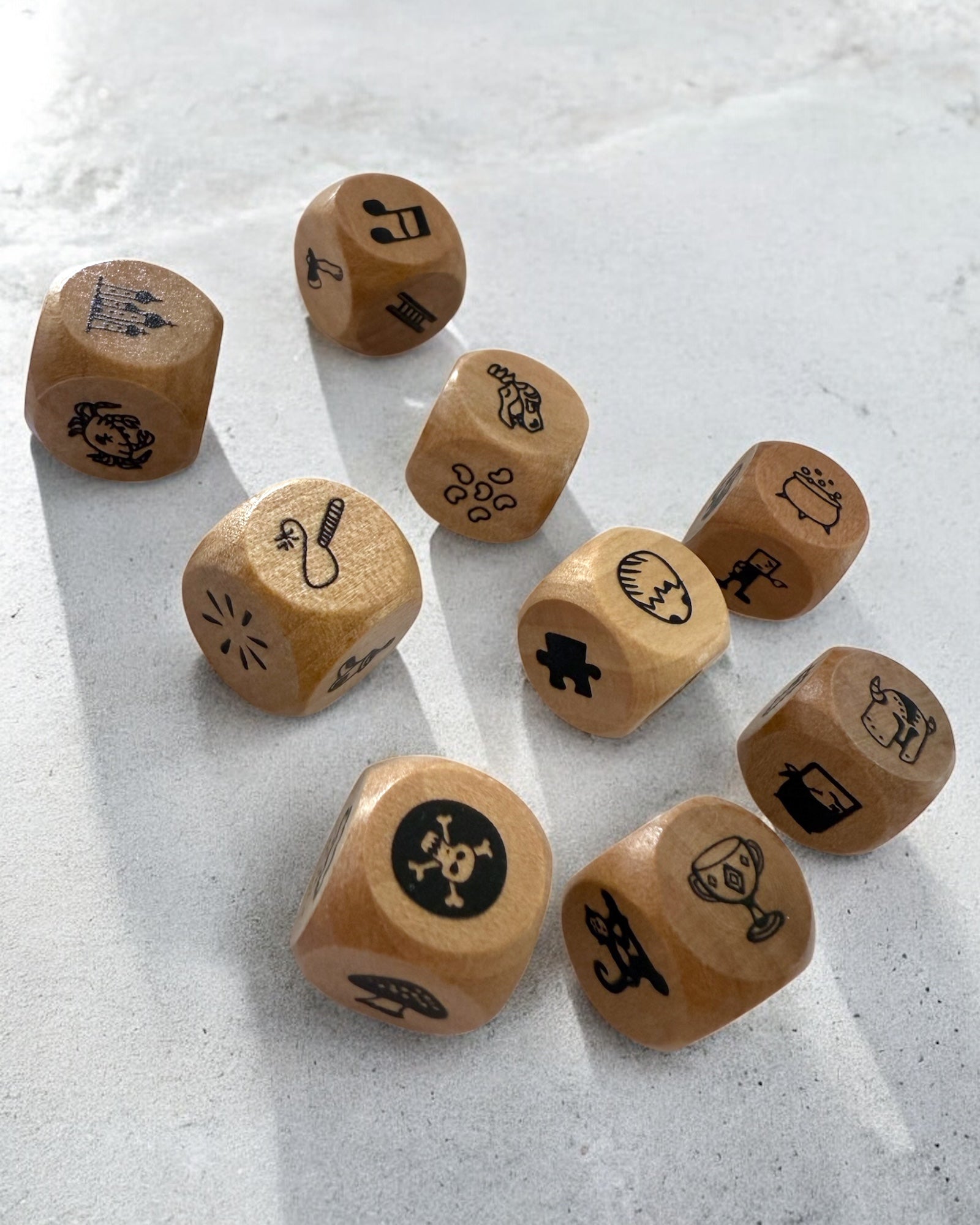 Die Sujets sind zum Thema Abenteuer gestaltet, von Dino-Schädeln bis zur Piratenflagge. So lassen sich unendlich viele Geschichten erschaffen. Einfach Würfeln, auswählen und erzählen…